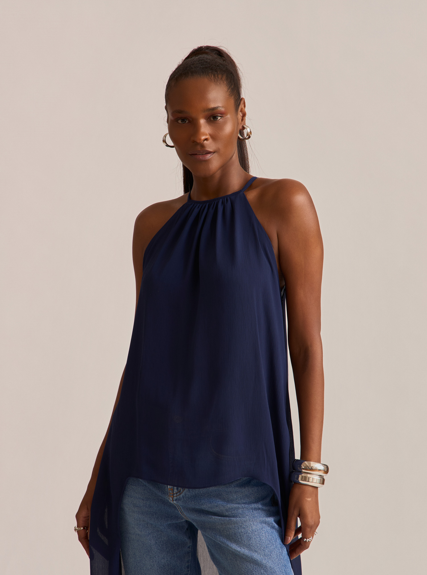 Blusa confeccionada em chiffon texturizado, que oferece caimento leve e impecável.