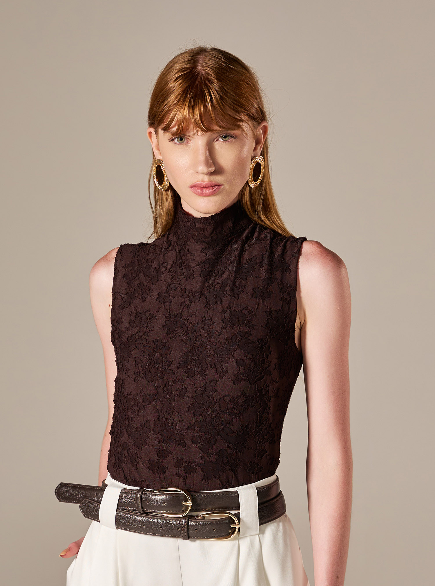 Com modelagem ajustada, o Body Crisantemo valoriza a silhueta com elegância e leveza. O design sofisticado e o caimento fluido reforçam a proposta elegante e versátil. A gola alta e o acabamento refinado completam o design sofisticado.