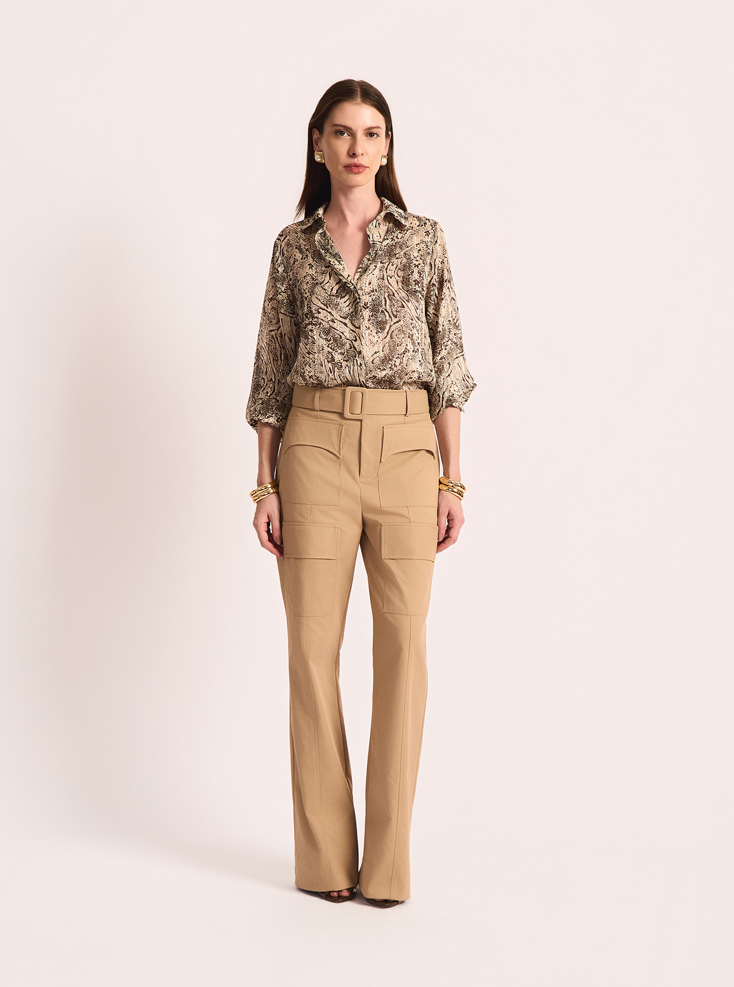 Calça confeccionada em tecido encorpado de alfaiataria, que combina elegância e funcionalidade em uma proposta moderna e sofisticada. O modelo apresenta cintura média/alta com cós estruturado e passantes, acompanhado de cinto do próprio tecido, garantindo melhor ajuste ao corpo e acabamento refinado. Os bolsos utilitários com lapelas adicionam um toque contemporâneo e urbano ao visual, sem perder a elegância característica da alfaiataria. A modelagem levemente reta proporciona conforto e um caimento alinhado, ideal para composições que transitam do look profissional ao casual chic.