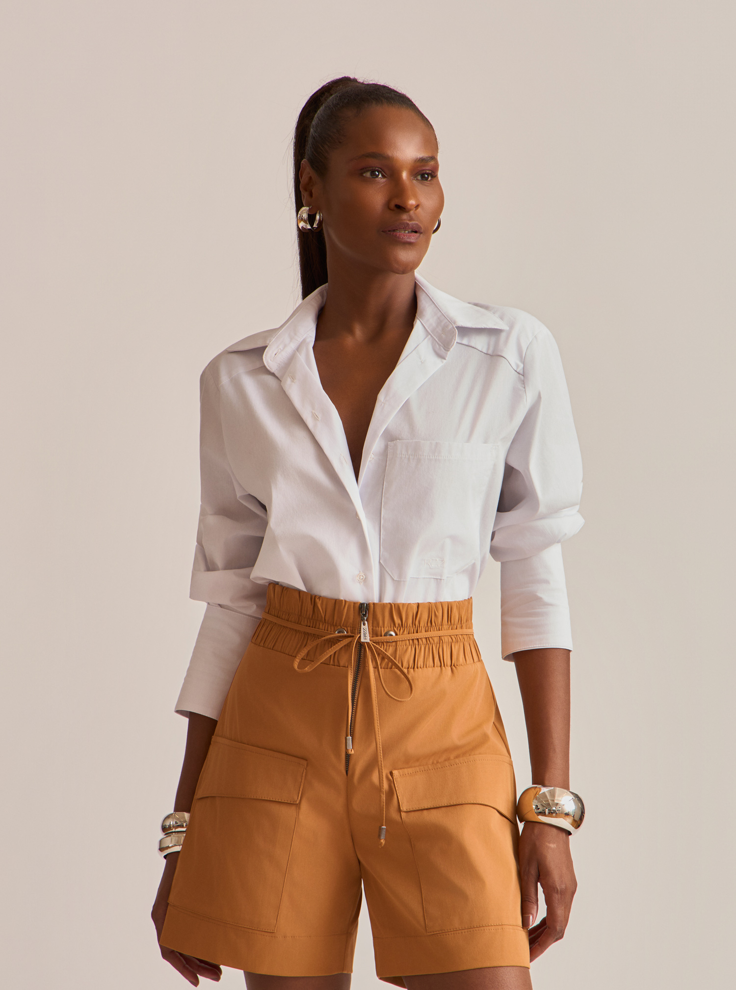 Com modelagem levemente ampla e corte impecável, oferece caimento elegante e confortável.