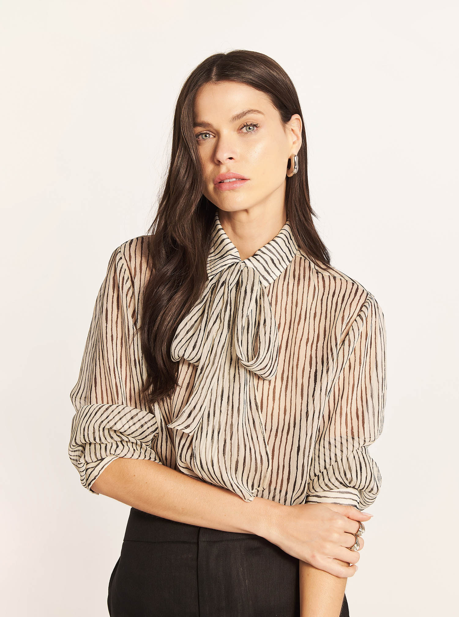 Confeccionada em chiffon leve off white com transparência sutil, esta camisa sheer entrega elegância moderna e visual sofisticado.