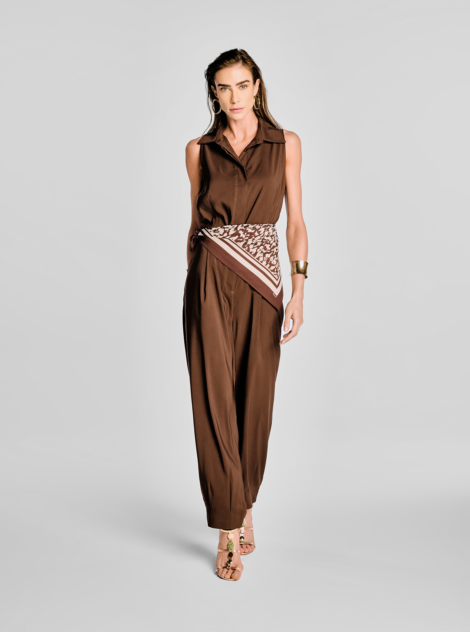 Este lenço feminino (70x70cm) é um acessório indispensável para quem valoriza estilo e exclusividade nos detalhes. Confeccionado em tecido acetinado leve com brilho sutil, ele proporciona toque macio e caimento perfeito. A peça se destaca pela estampa exclusiva em marrom, desenvolvida com design autoral que adiciona elegância e personalidade a qualquer produção. Versátil e atemporal, o lenço pode ser usado de diversas formas (no pescoço, cabelo, bolsa ou completando o look), permitindo composições que vão do elegante e sofisticado ao despojado chic.