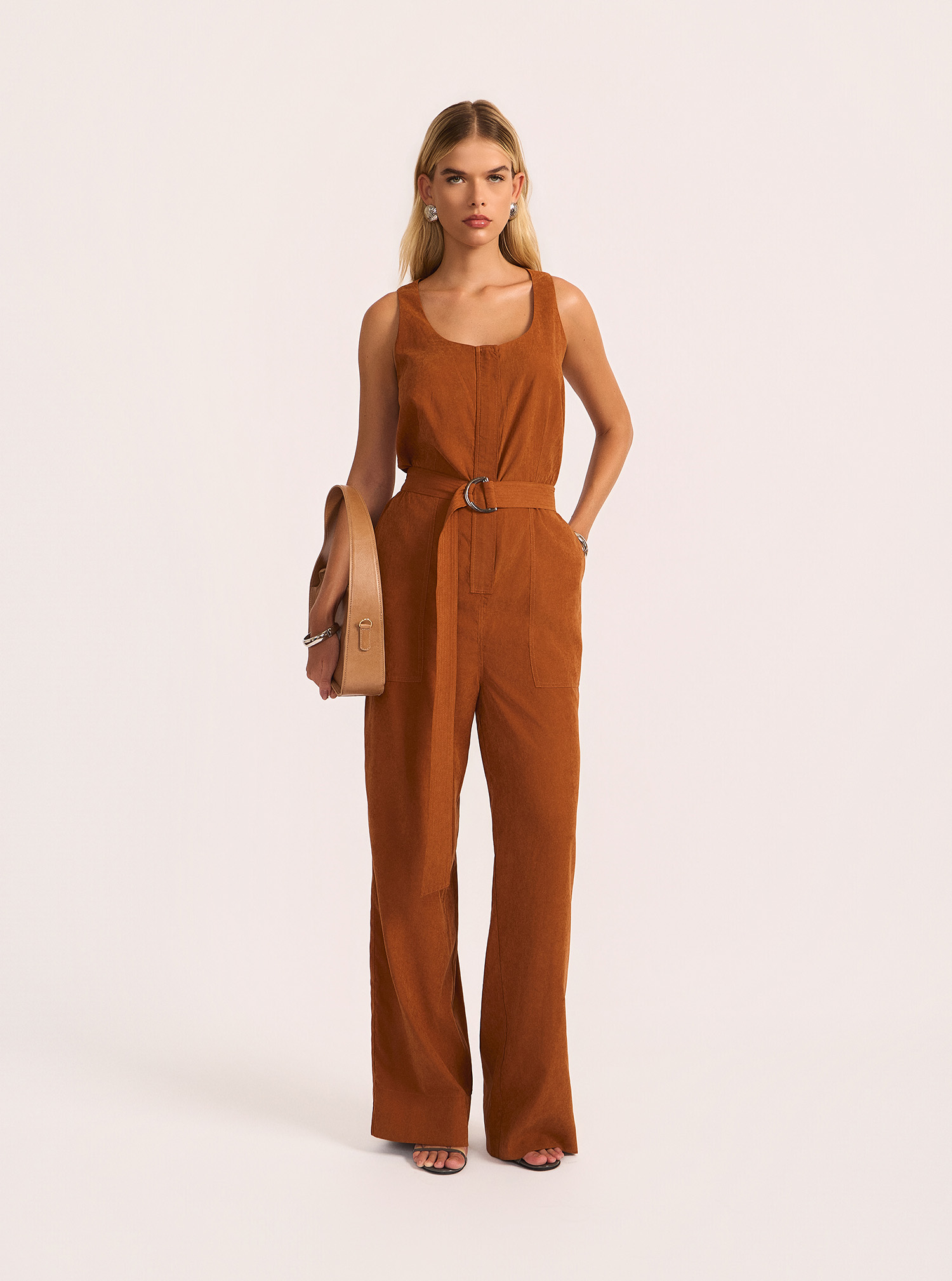 Macacão confeccionado em alfaiataria, que une sofisticação atemporal e conforto em uma proposta elegante e versátil. A modelagem alongada com caimento estruturado valoriza a silhueta de forma refinada, enquanto o decote amplo e as alças largas equilibram modernidade e elegância. O cinto do próprio tecido permite ajuste perfeito na cintura, realçando o visual alinhado da peça. A calça de modelagem reta garante fluidez e leveza ao vestir, mantendo o acabamento clássico da alfaiataria. Ideal para produções formais ou looks contemporâneos para o dia a dia.
