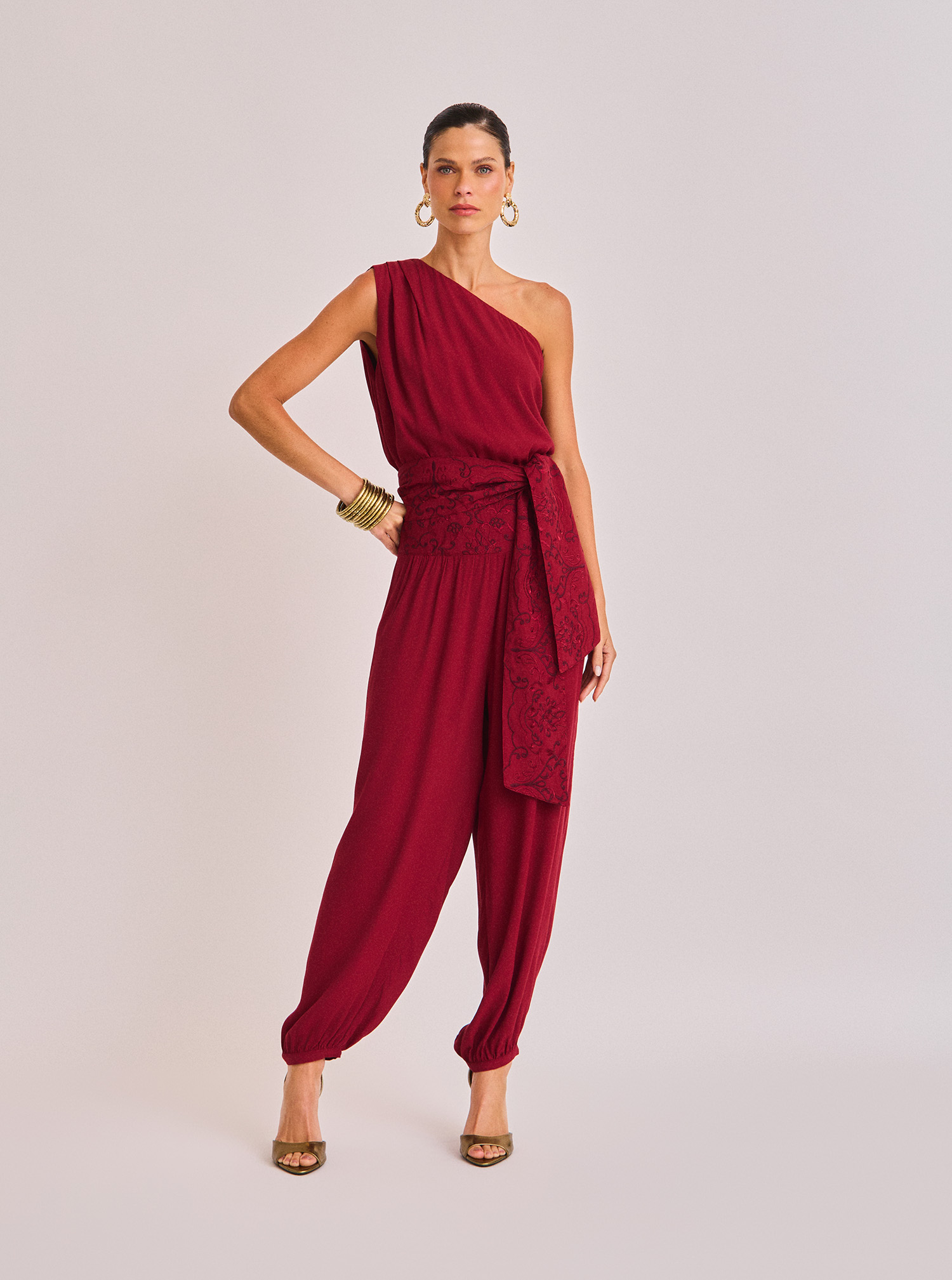 Confeccionado em tecido nobre com viscose, este macacão recebe bordado exclusivo em fio de lurex, que adiciona um brilho sutil e refinado à peça. Seu design de um ombro só, aliado à faixa no mesmo tecido bordado, valoriza a silhueta com sofisticação. O shape Aladdin garante leveza, movimento e proporções modernas, fugindo do óbvio e trazendo autenticidade ao look. Com forro interno para maior conforto e zíper lateral de acabamento impecável, é uma peça pensada para ocasiões especiais que pedem impacto e estilo.