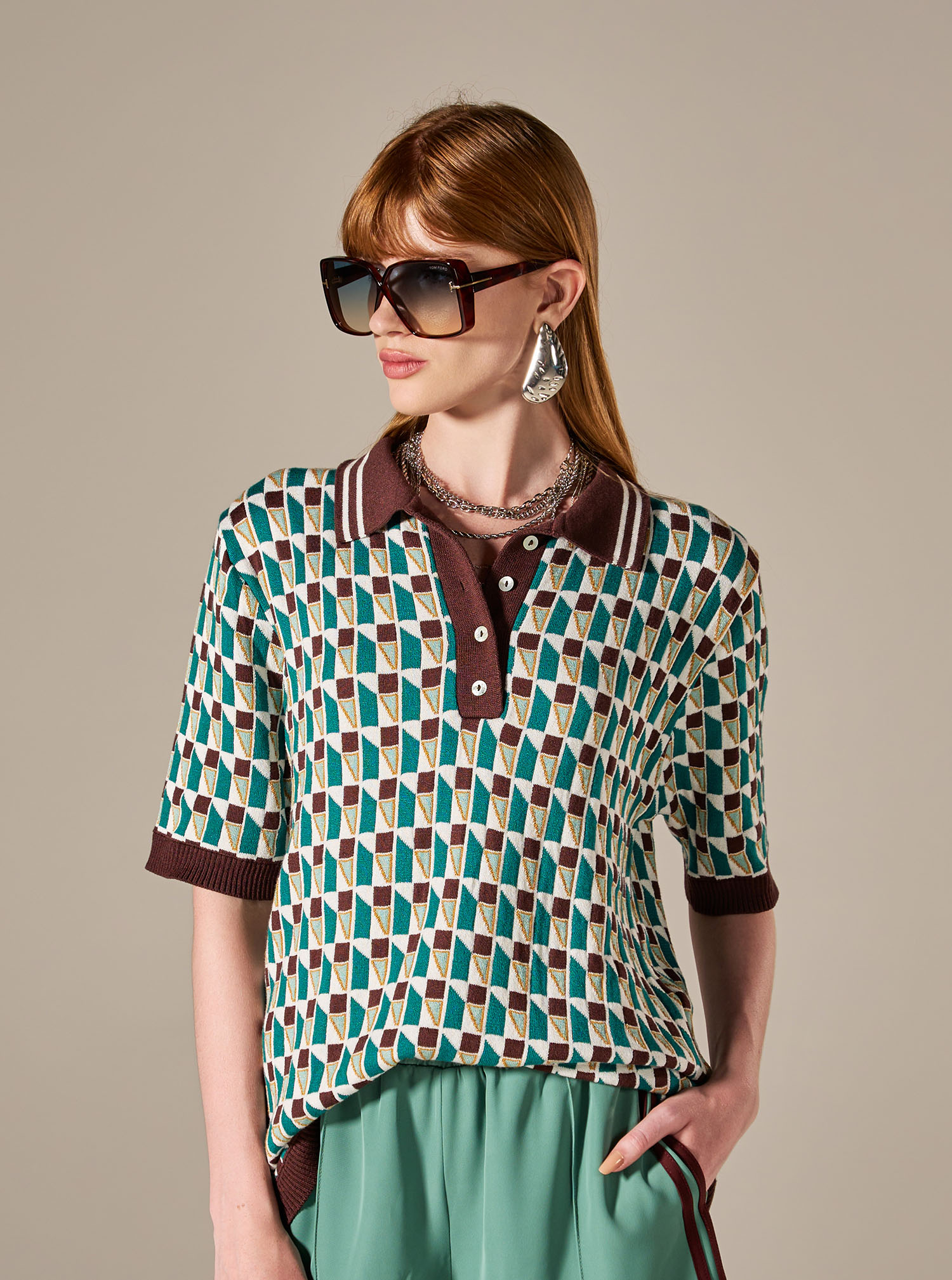 A Polo Tricô Nenufar Estampado é a escolha ideal para quem busca estilo, conforto e um visual sofisticado. Confeccionada em tricô encorpado, esta peça traz uma estampa geométrica moderna que adiciona personalidade ao look.