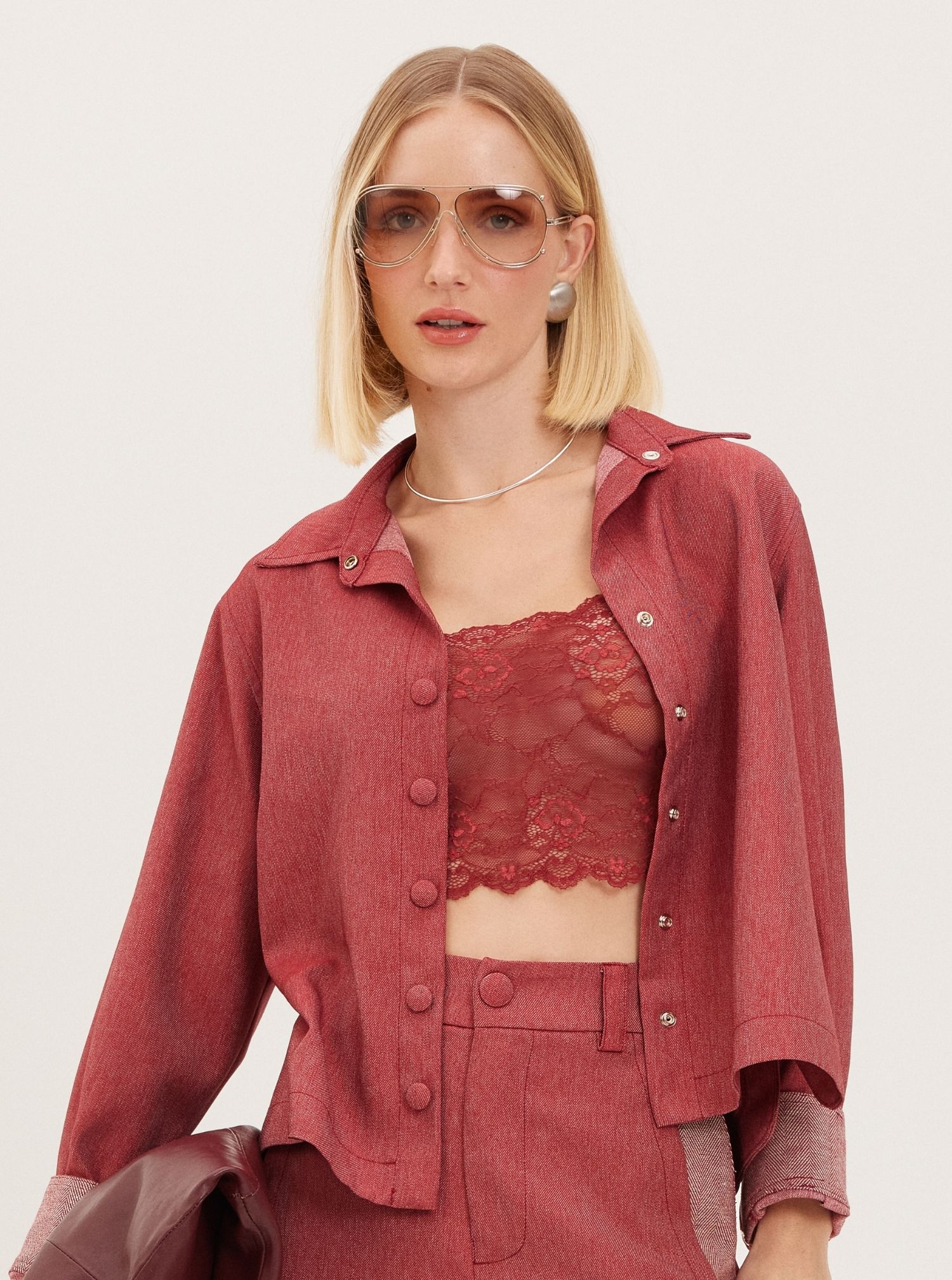 Este top confeccionado em renda é uma peça delicada e sofisticada, perfeita para adicionar um toque de elegância ao seu guarda-roupa. Disponível na cor bordô, ele se adapta a diferentes estilos e ocasiões.
