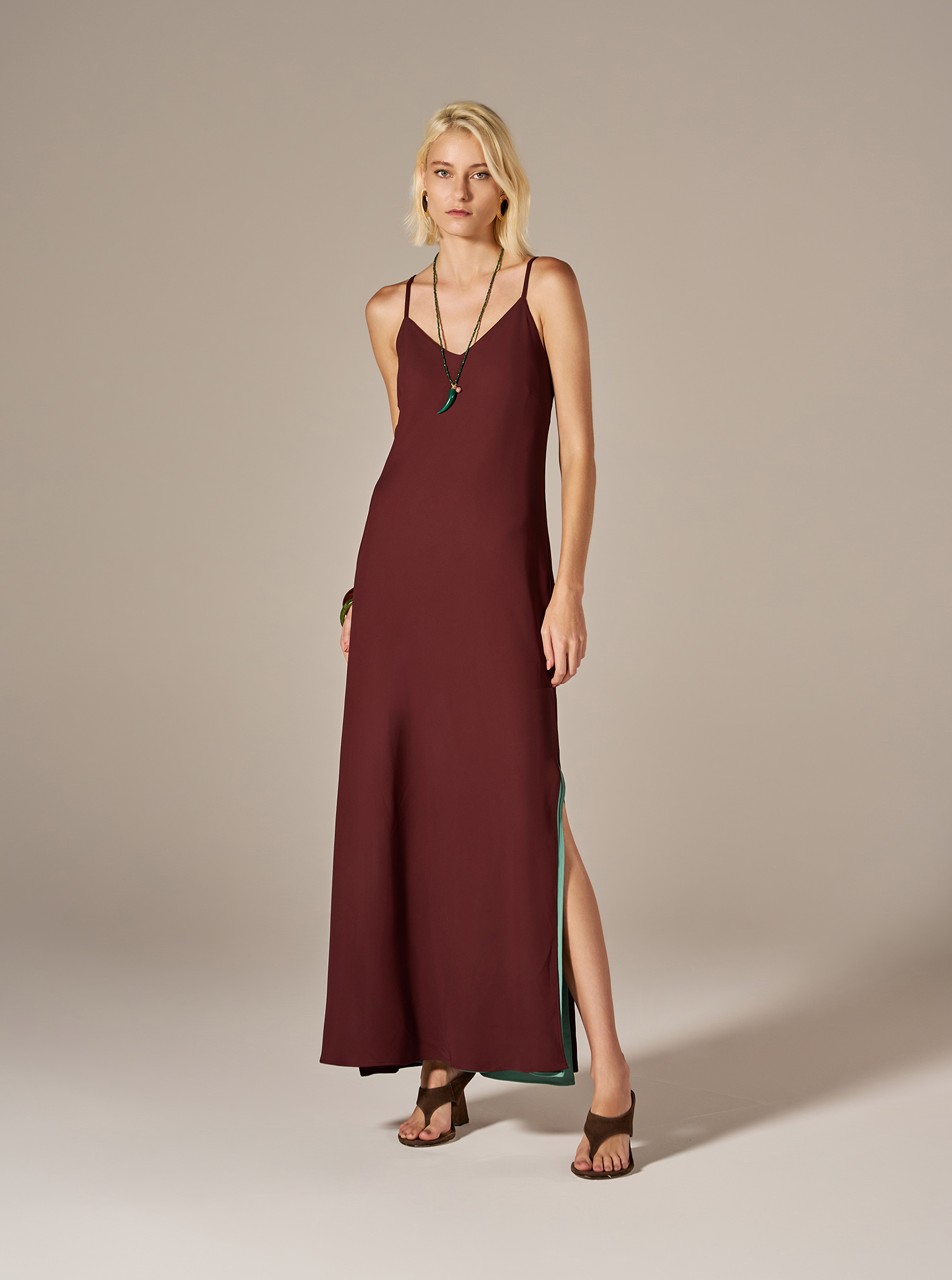 Com alças finas, decote em V e faixa para amarração na cintura, o vestido permite ajuste personalizado e destaca a linha da cintura. O design clean e atemporal facilita o uso em diferentes ocasiões, do casual ao mais sofisticado. A faixa para amarração oferece flexibilidade de styling, permitindo diferentes formas de acinturar e valorizar a silhueta conforme desejado.